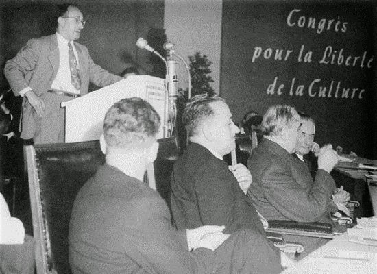 | Sidney Hook en la inauguración del Congreso para la Libertad Cultural |