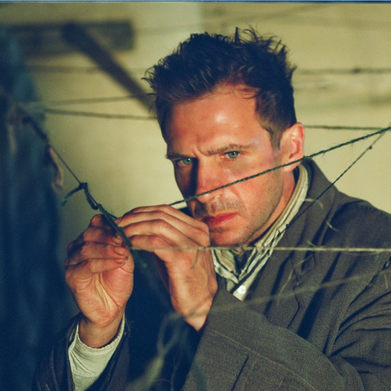 Basta con ver el intro de la película para saber a qué nos vamos a enfrentar: los créditos acompañados de la música de Howard Shore están adornados por figuras parecidas a las que podemos encontrar en un Test de Rorschach. Esto impacta y sirve de mucho porque minutos después aparecerá en la pantalla un famélico Ralph Fiennes interpretando a Dennis Cleg —o mejor dicho a Spider— , quien se bajará de un tren y nos dará la primera impresión, la de un tipo con una maleta, ropa descuidada, corte de cabello asimétrico y una penetrante mirada perturbada que insinúa haber estado encerrado por un largo periodo de tiempo. Spider impacta e impone desde el primer contacto con el espectador.